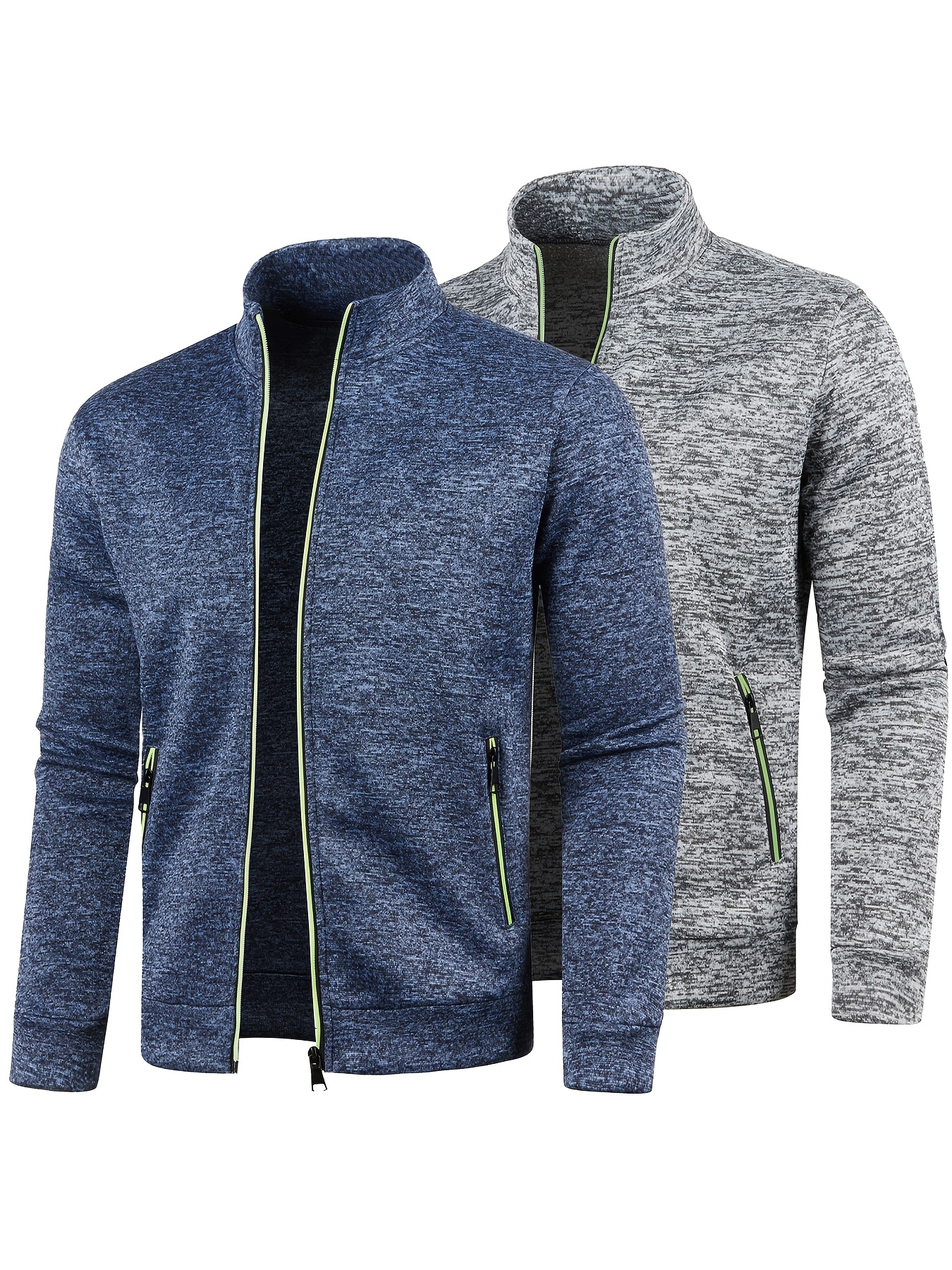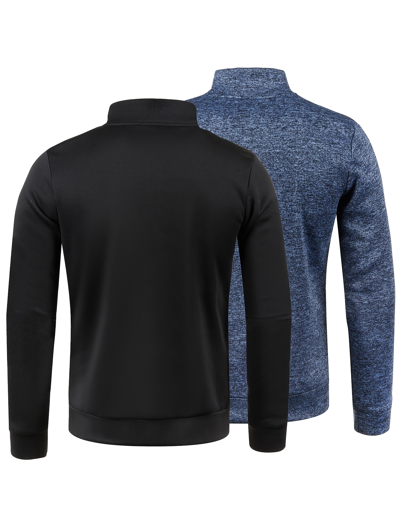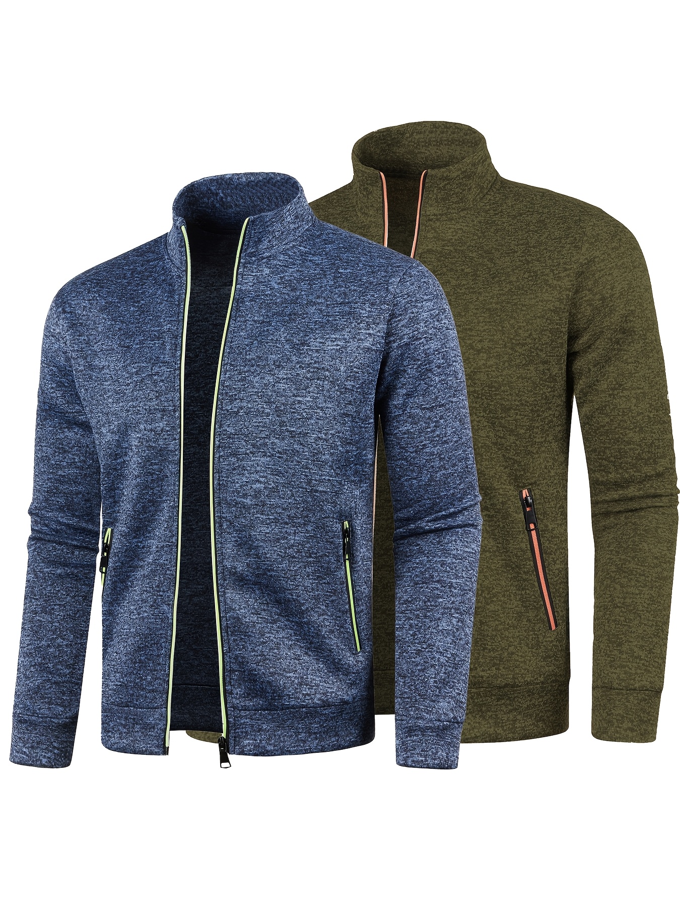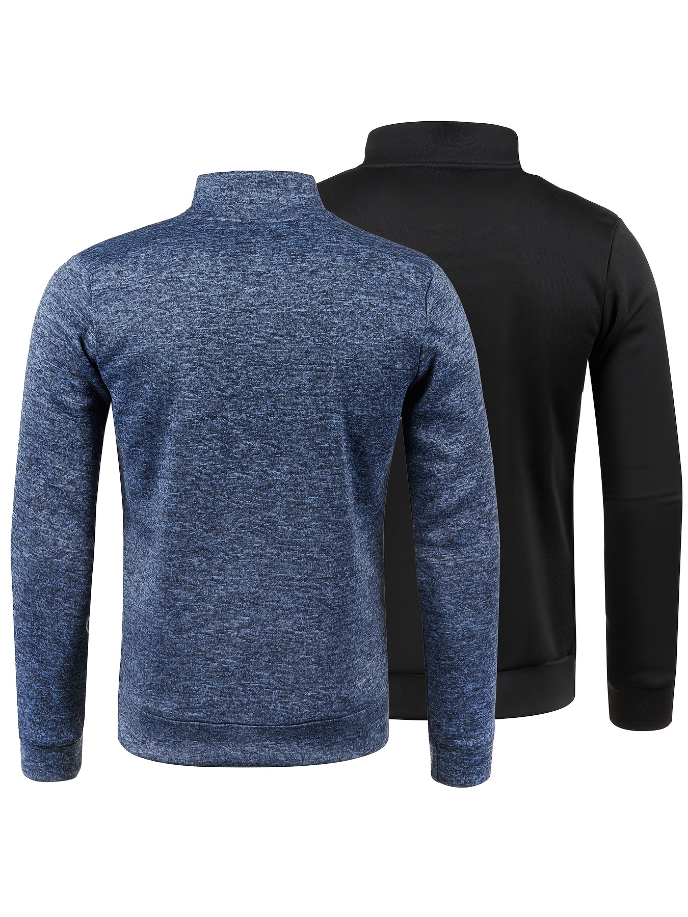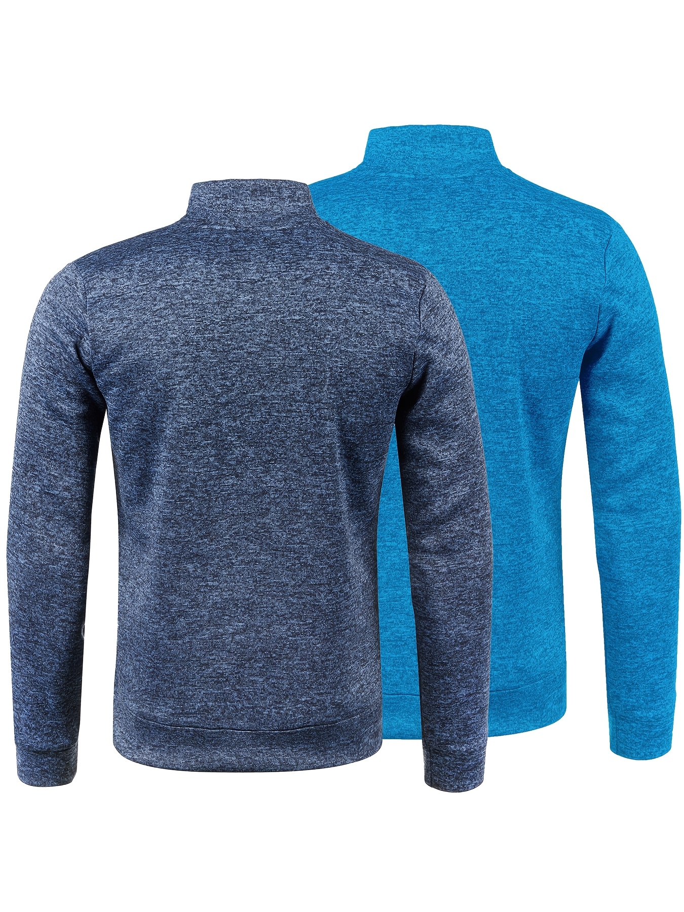 This men's casual long-sleeve zip-up pullover sweater set is designed for comfort and performance. Featuring a sleek high neck and skinny fit, it's an ideal choice for golf, camping, and outdoor leisure activities. Made from 100% polyester fibre, the knit fabric offers lightweight warmth, durability, and easy mobility. Its casual style and streamlined zip-front design make it suitable for both active and relaxed settings. Available in navy, this zippered jacket-style sweater set is a versatile essential for sporty wardrobes.