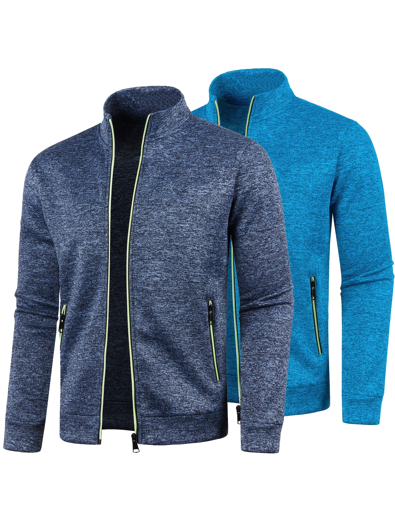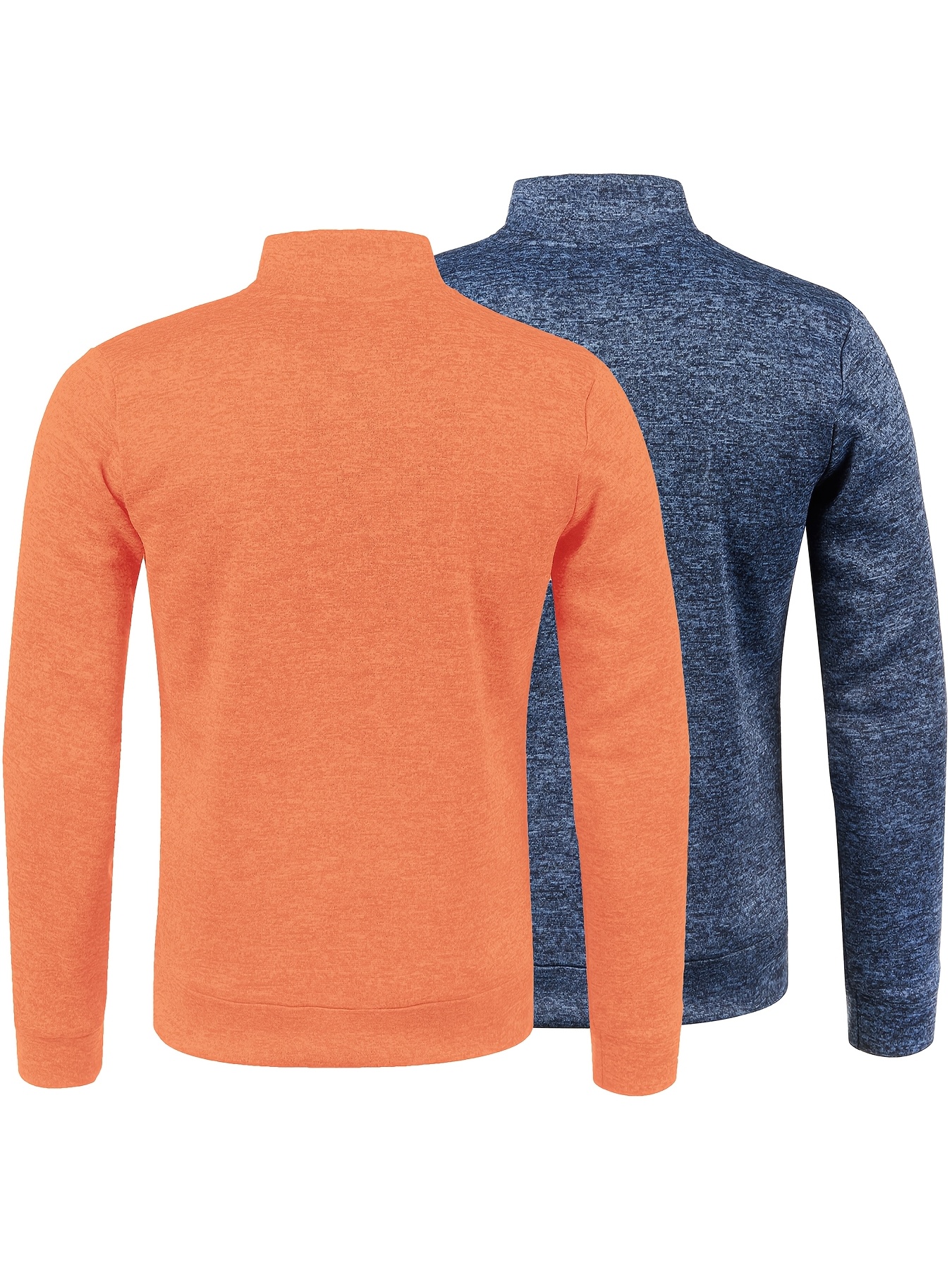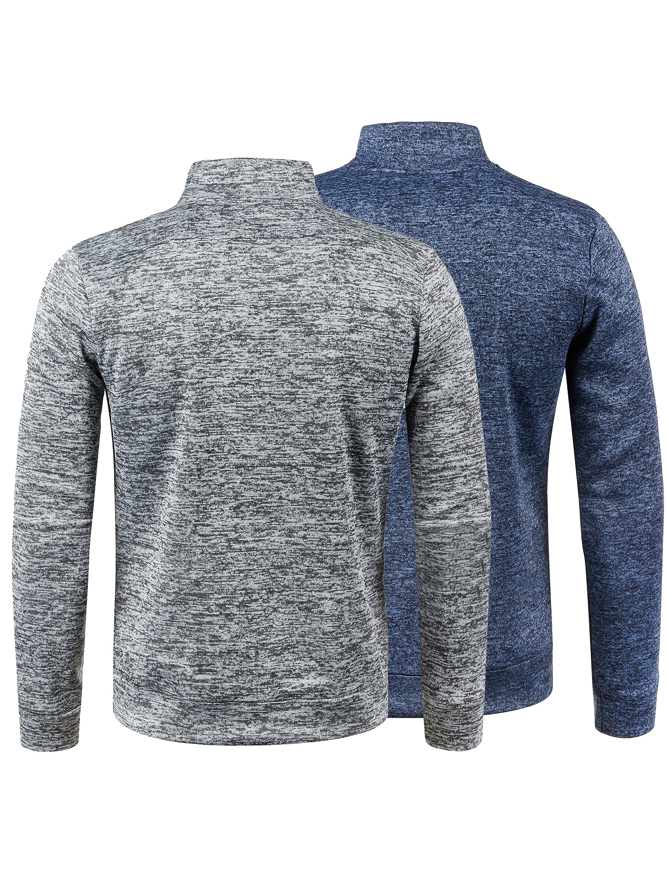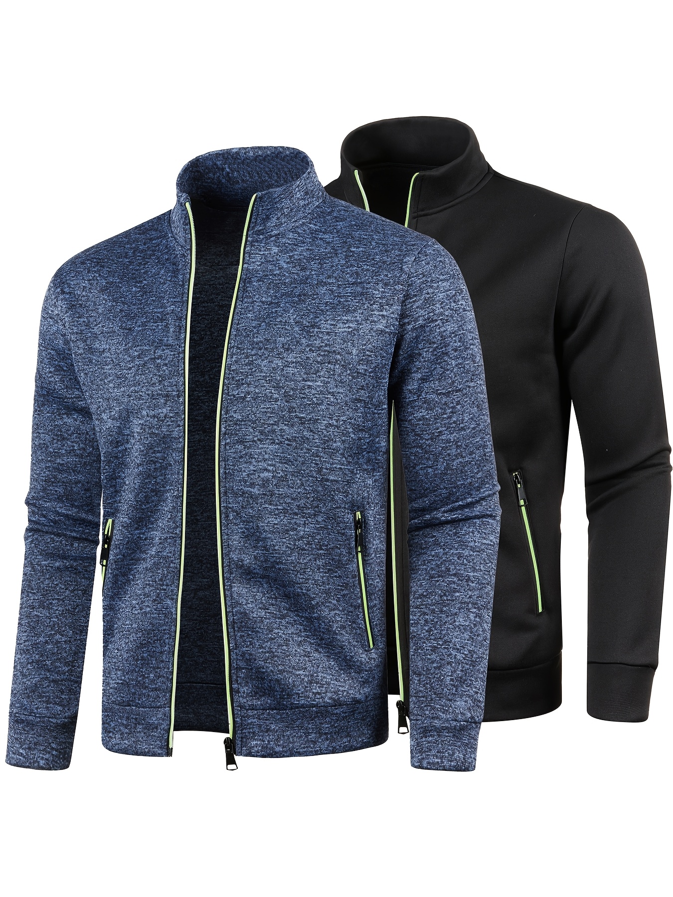 This men's casual long-sleeve zip-up pullover sweater set is designed for comfort and performance. Featuring a sleek high neck and skinny fit, it's an ideal choice for golf, camping, and outdoor leisure activities. Made from 100% polyester fibre, the knit fabric offers lightweight warmth, durability, and easy mobility. Its casual style and streamlined zip-front design make it suitable for both active and relaxed settings. Available in navy, this zippered jacket-style sweater set is a versatile essential for sporty wardrobes.