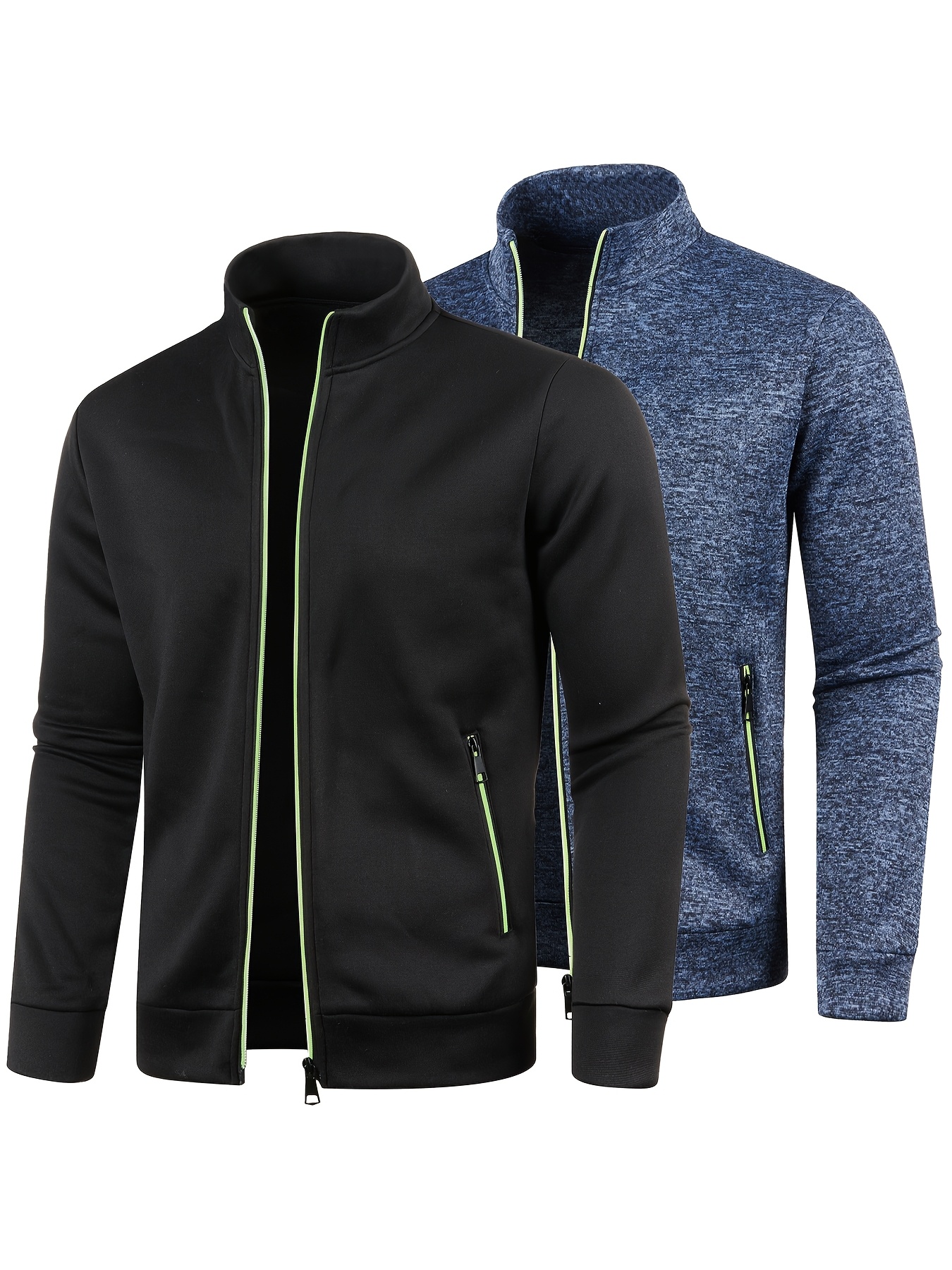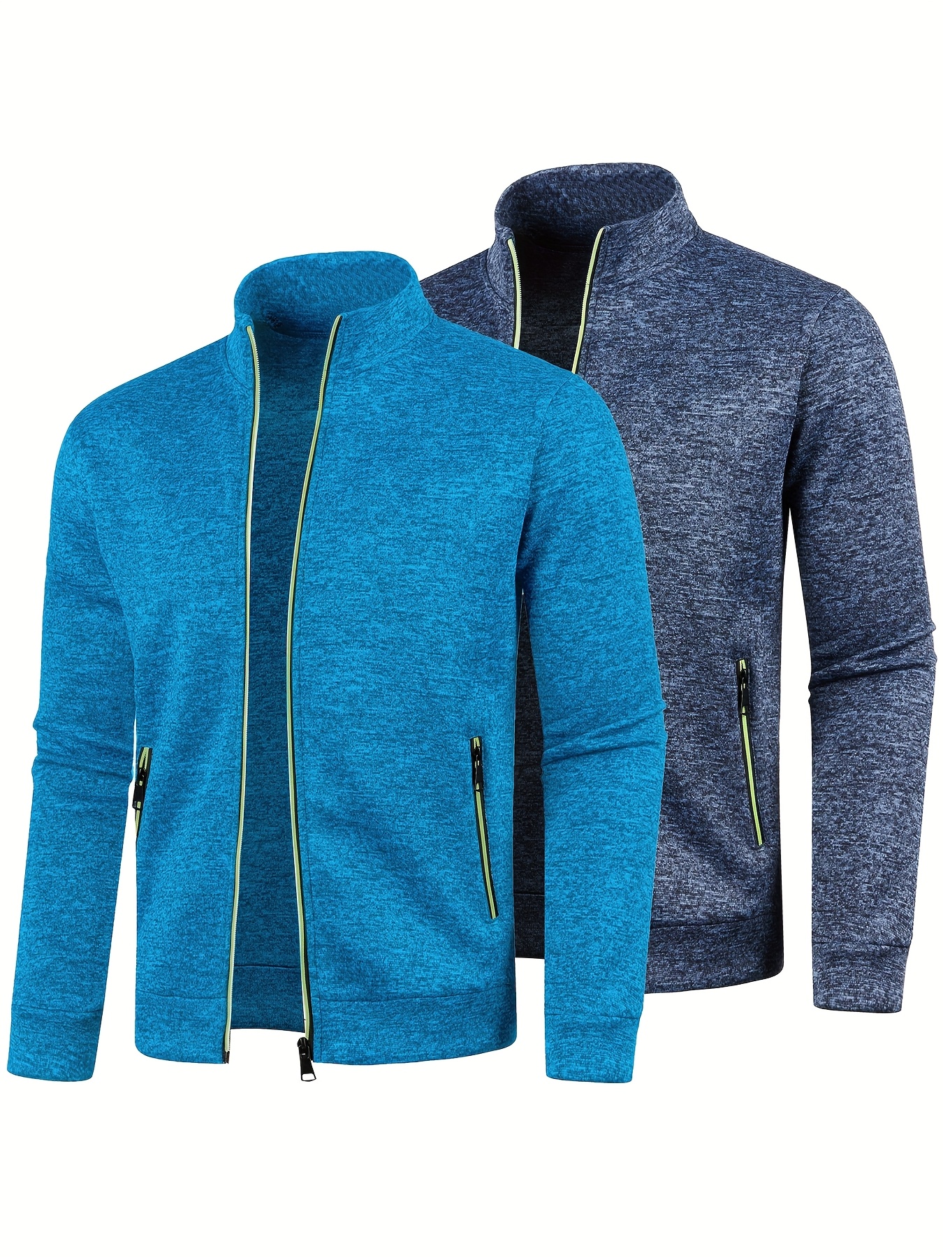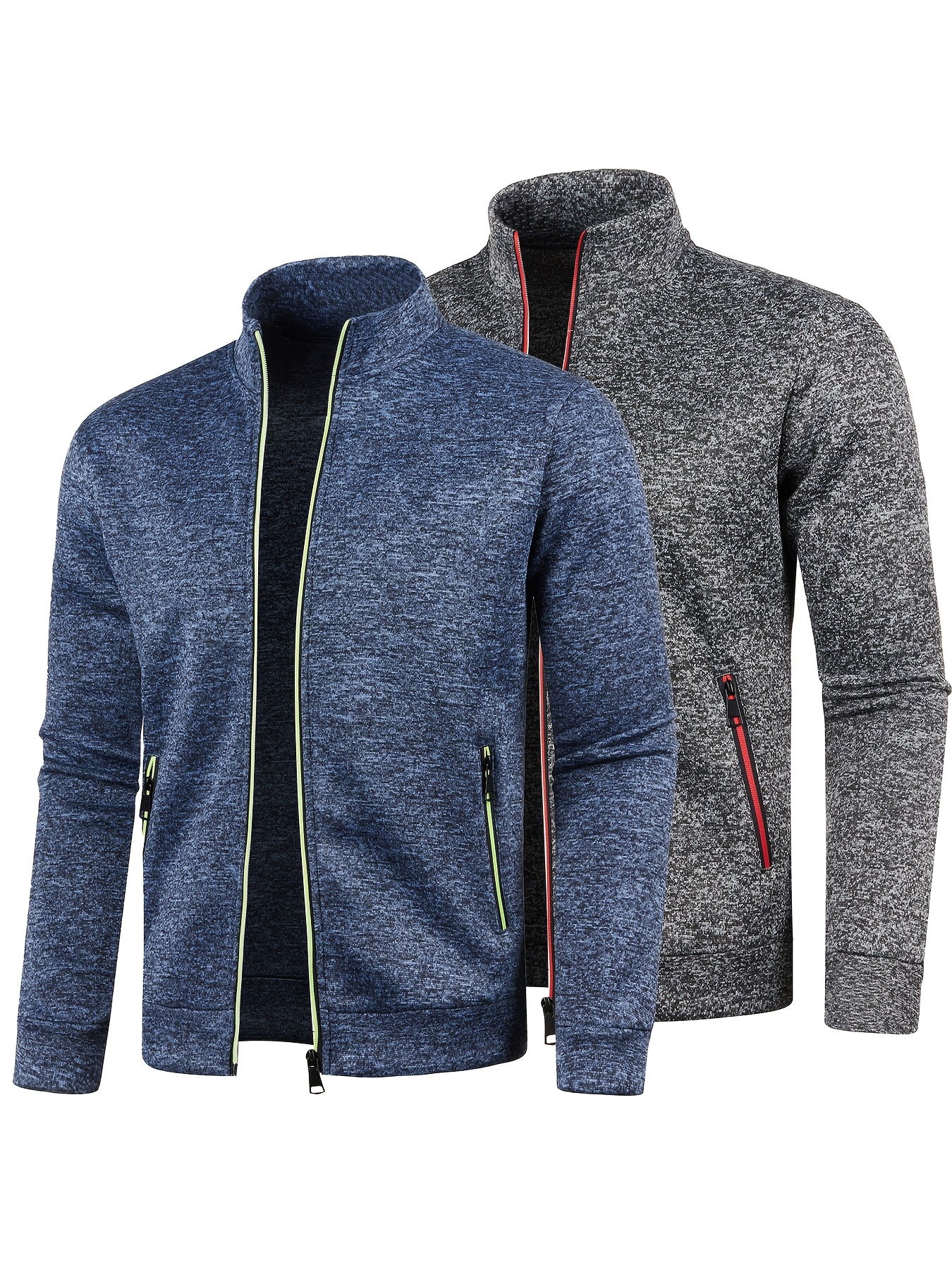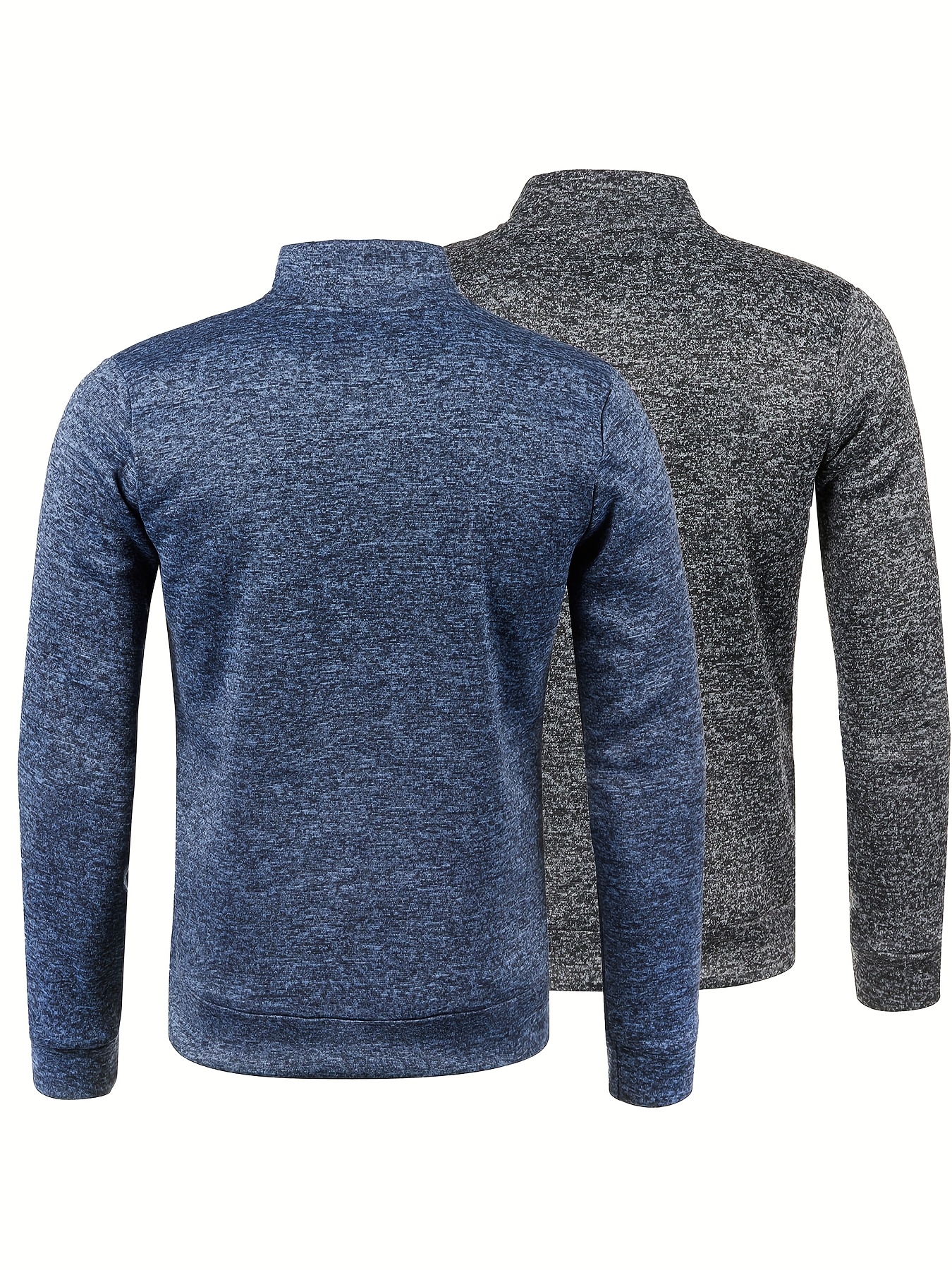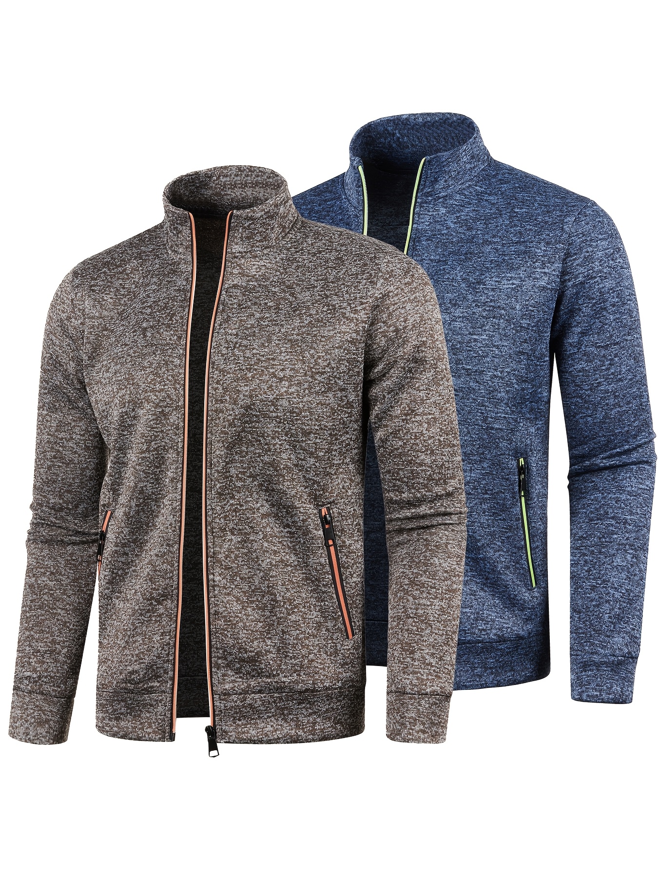 This men's casual long-sleeve zip-up pullover sweater set is designed for comfort and performance. Featuring a sleek high neck and skinny fit, it's an ideal choice for golf, camping, and outdoor leisure activities. Made from 100% polyester fibre, the knit fabric offers lightweight warmth, durability, and easy mobility. Its casual style and streamlined zip-front design make it suitable for both active and relaxed settings. Available in navy, this zippered jacket-style sweater set is a versatile essential for sporty wardrobes.