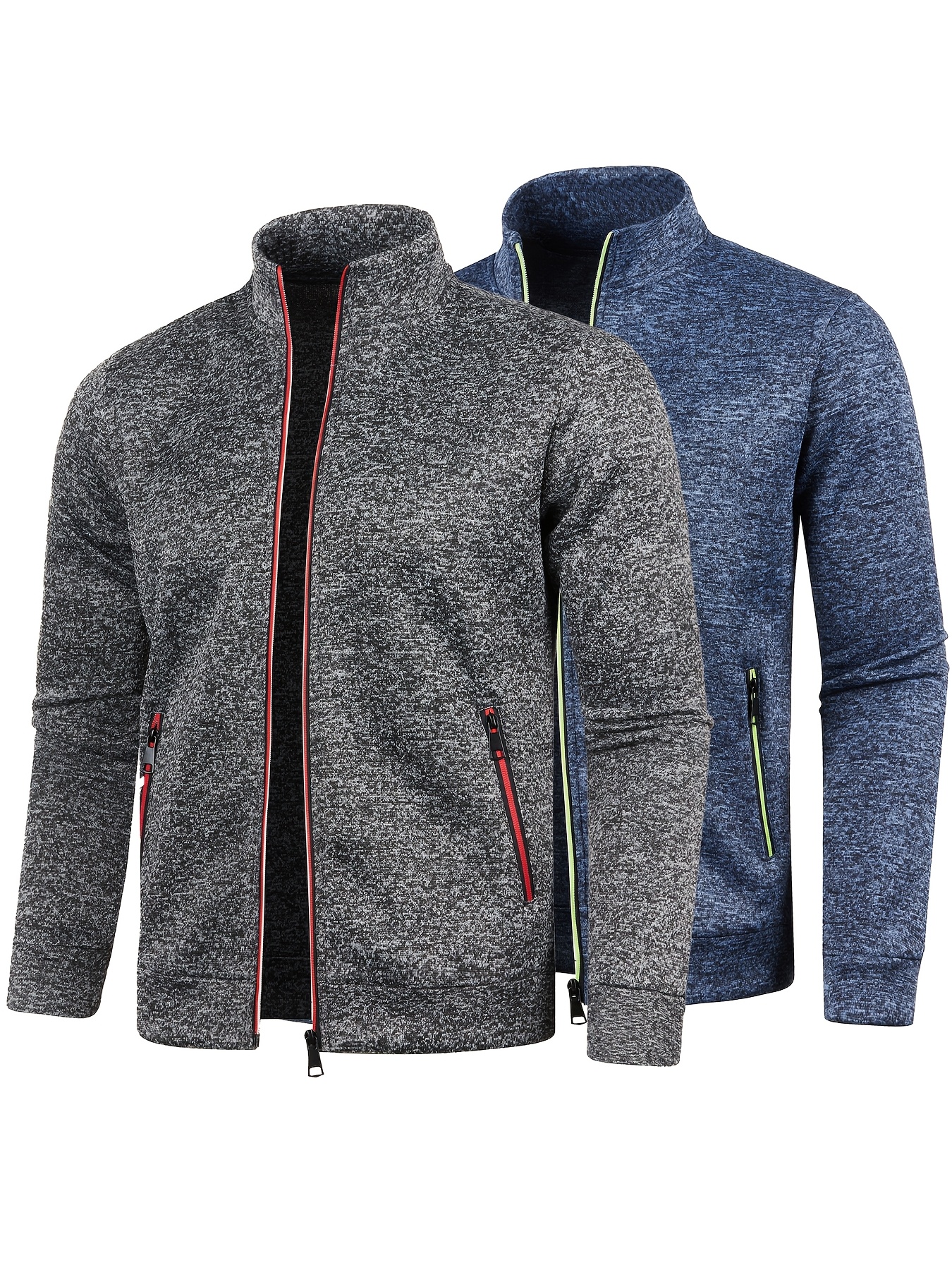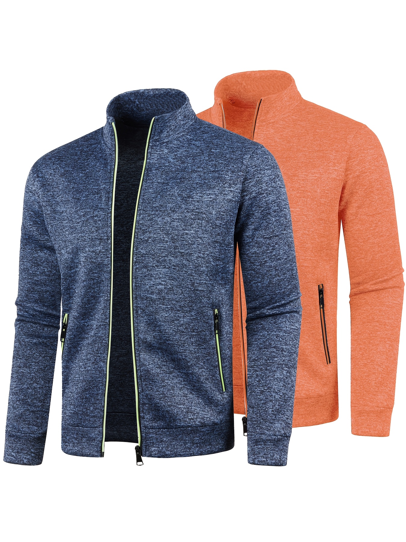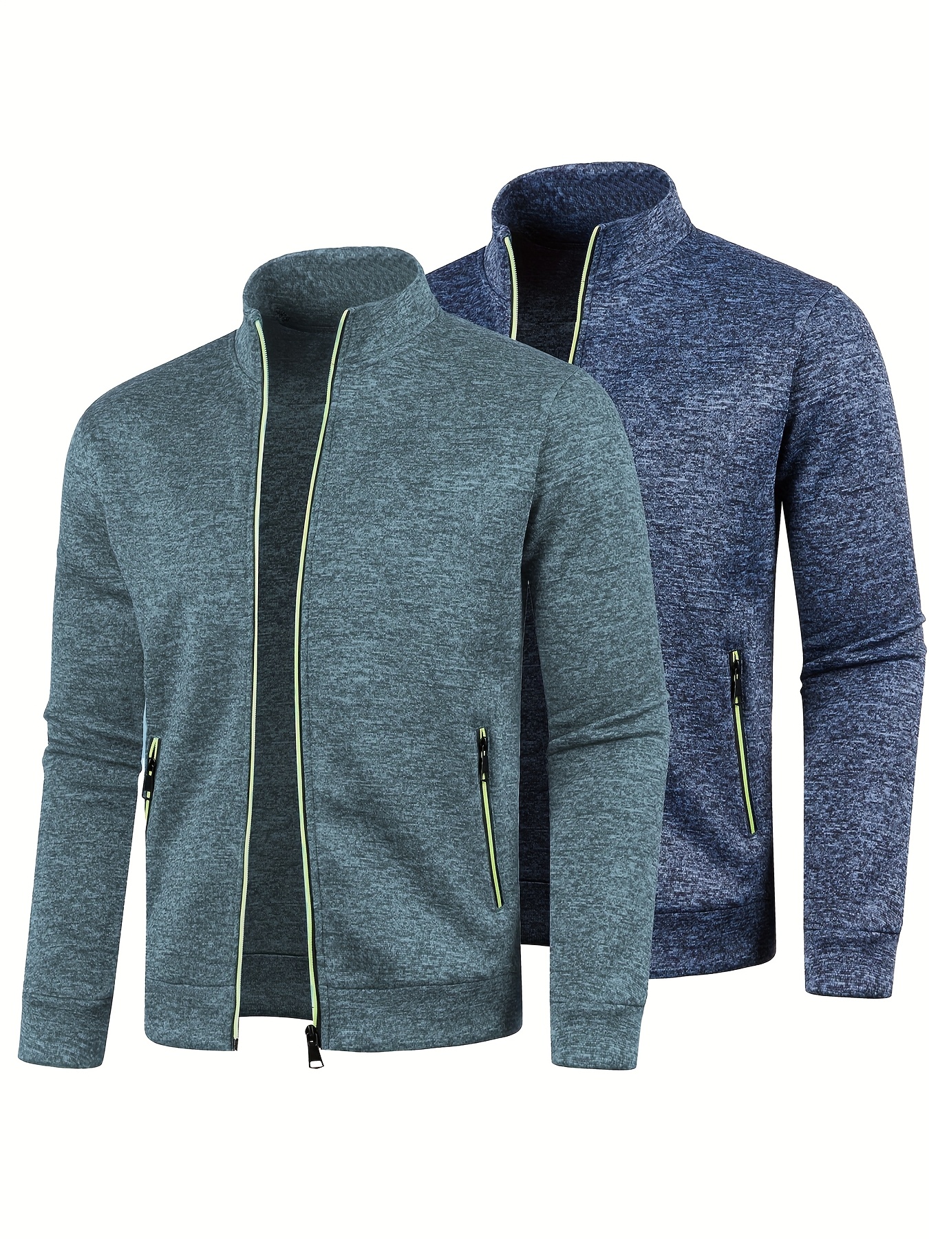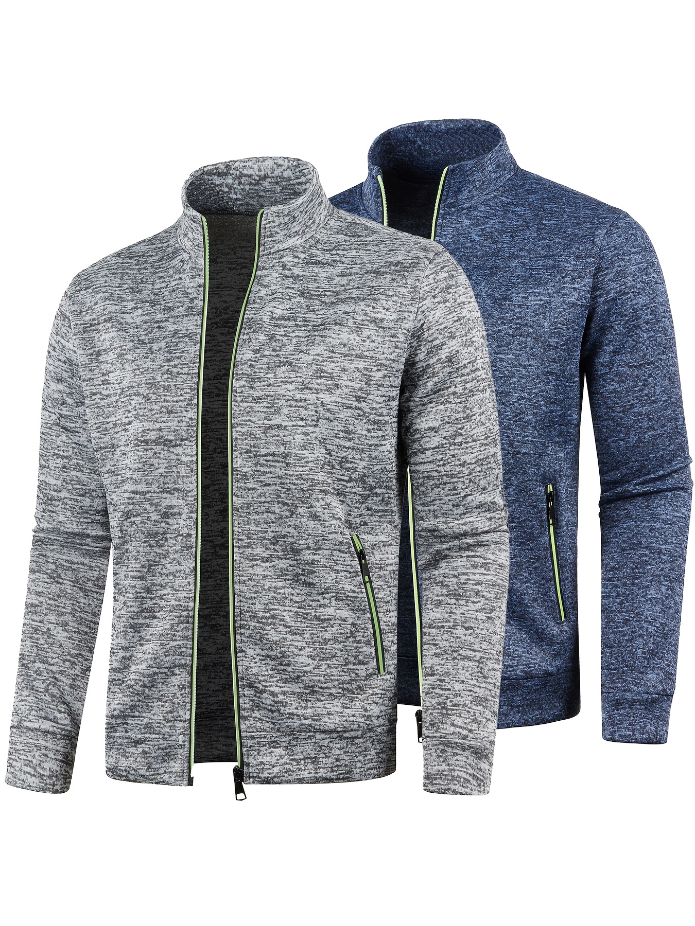 This men's casual long-sleeve zip-up pullover sweater set is designed for comfort and performance. Featuring a sleek high neck and skinny fit, it's an ideal choice for golf, camping, and outdoor leisure activities. Made from 100% polyester fibre, the knit fabric offers lightweight warmth, durability, and easy mobility. Its casual style and streamlined zip-front design make it suitable for both active and relaxed settings. Available in navy, this zippered jacket-style sweater set is a versatile essential for sporty wardrobes.
