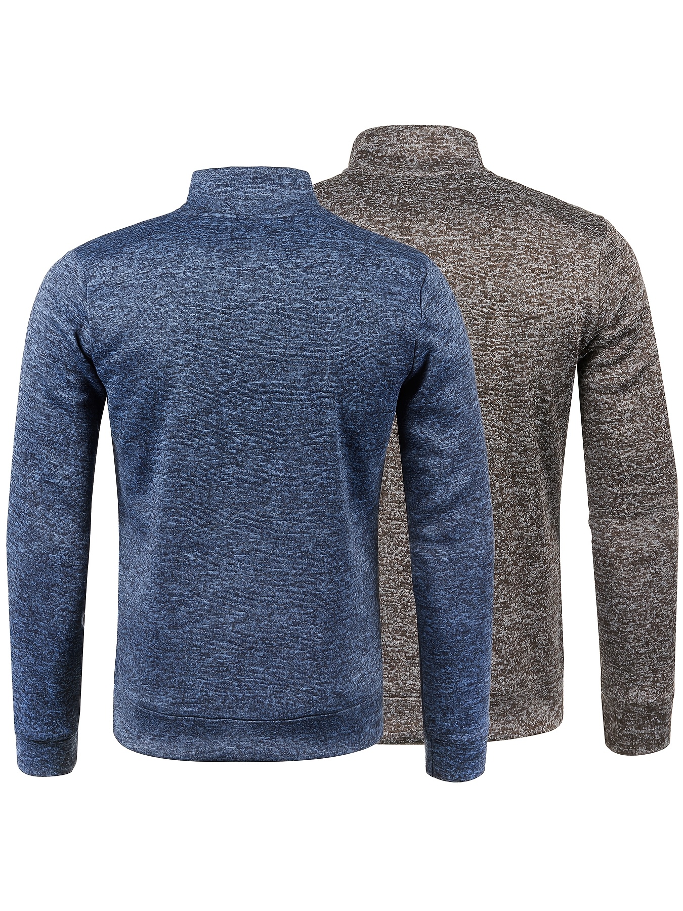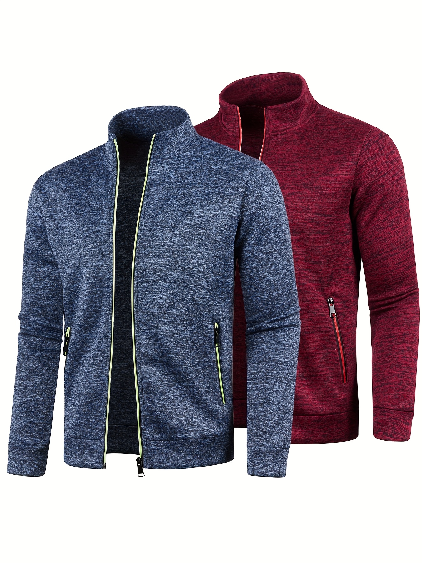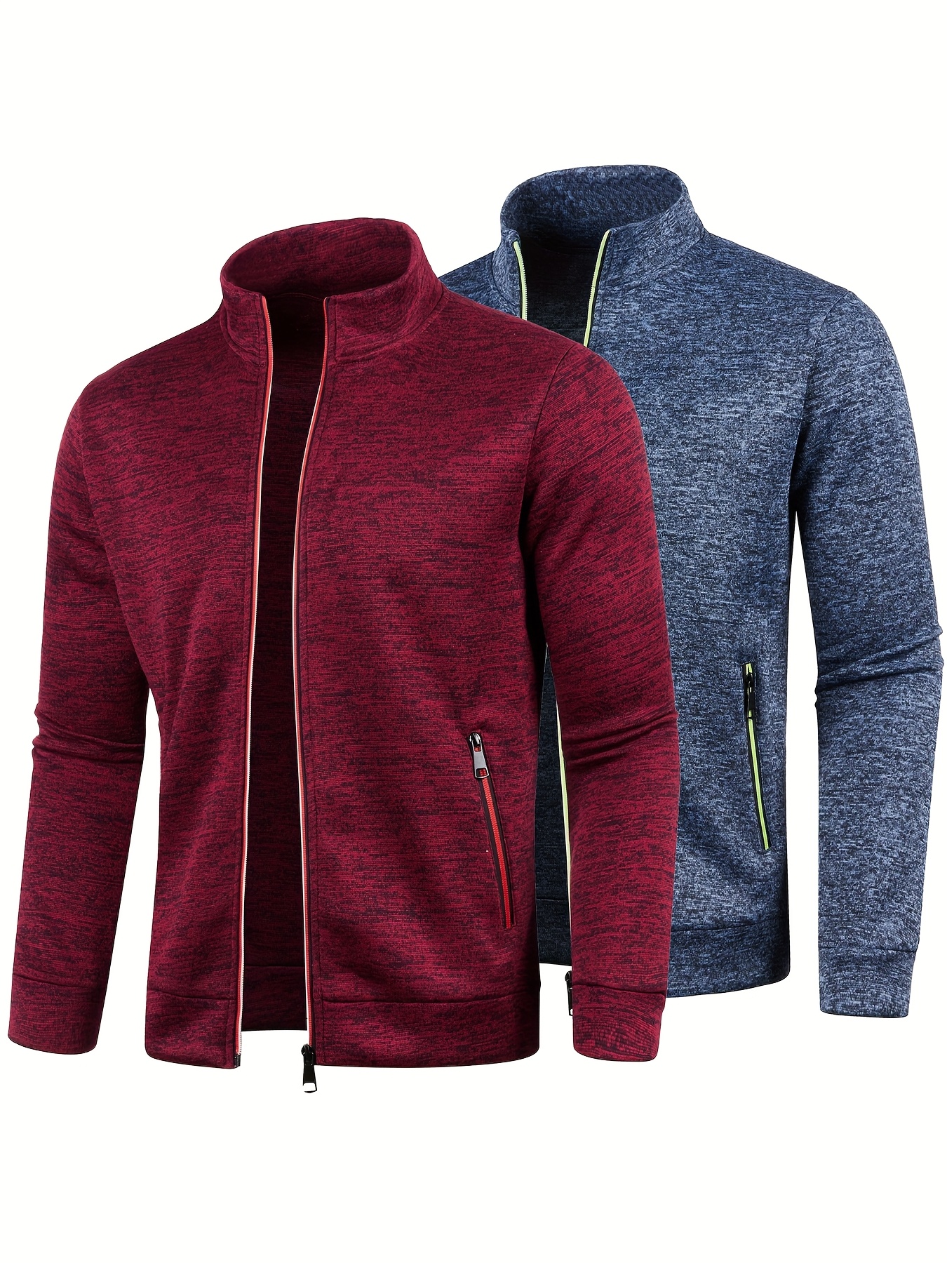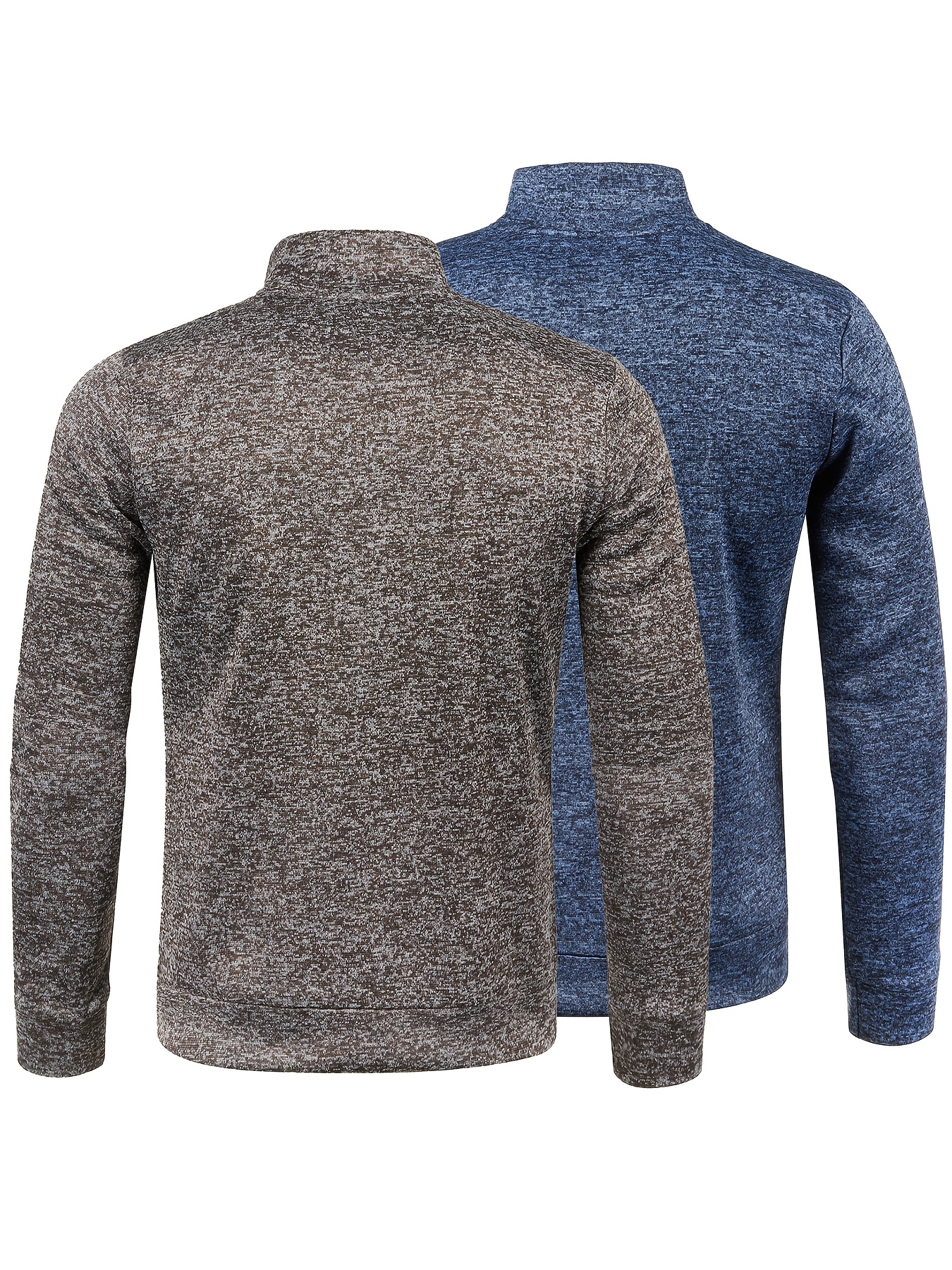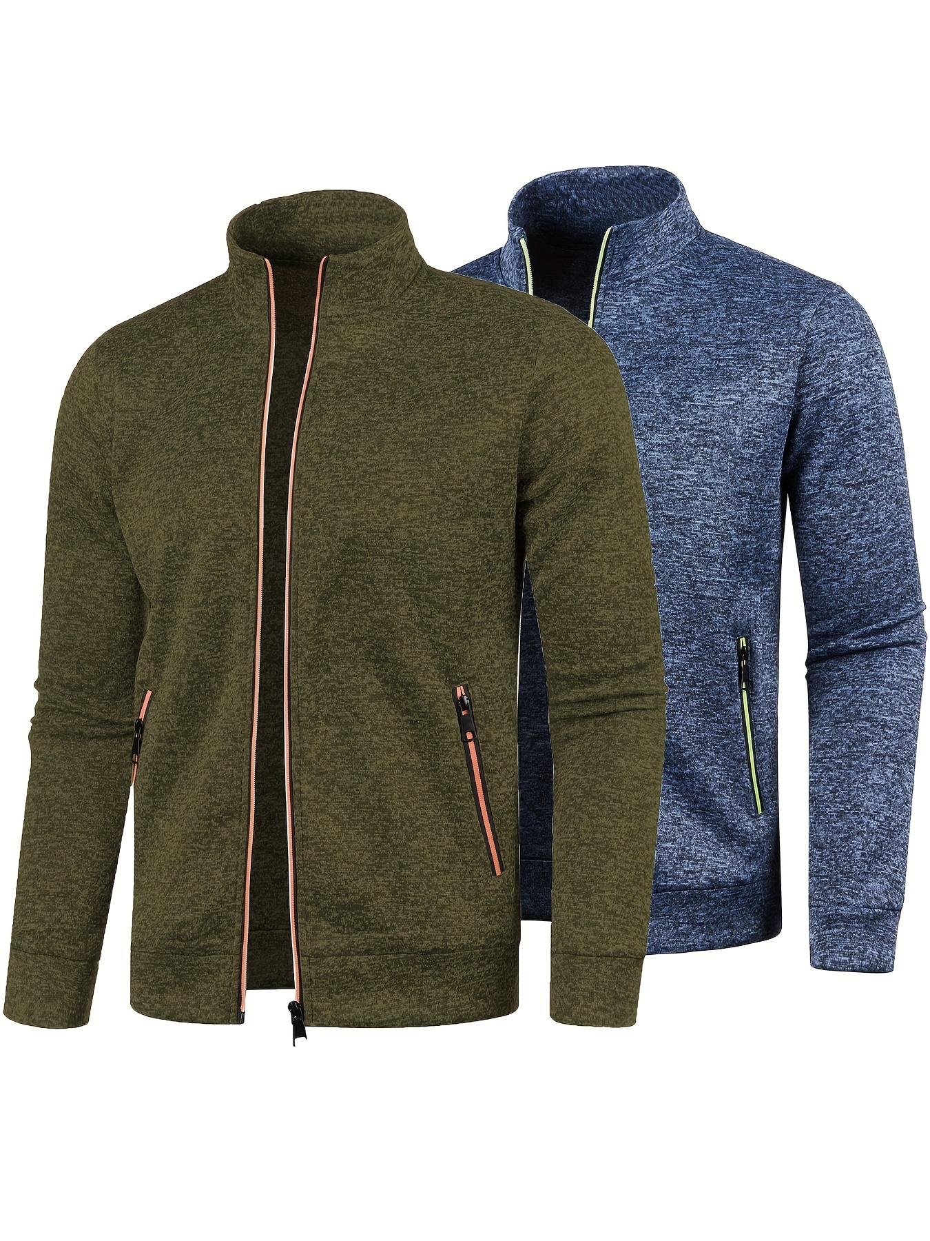 This men's casual long-sleeve zip-up pullover sweater set is designed for comfort and performance. Featuring a sleek high neck and skinny fit, it's an ideal choice for golf, camping, and outdoor leisure activities. Made from 100% polyester fibre, the knit fabric offers lightweight warmth, durability, and easy mobility. Its casual style and streamlined zip-front design make it suitable for both active and relaxed settings. Available in navy, this zippered jacket-style sweater set is a versatile essential for sporty wardrobes.