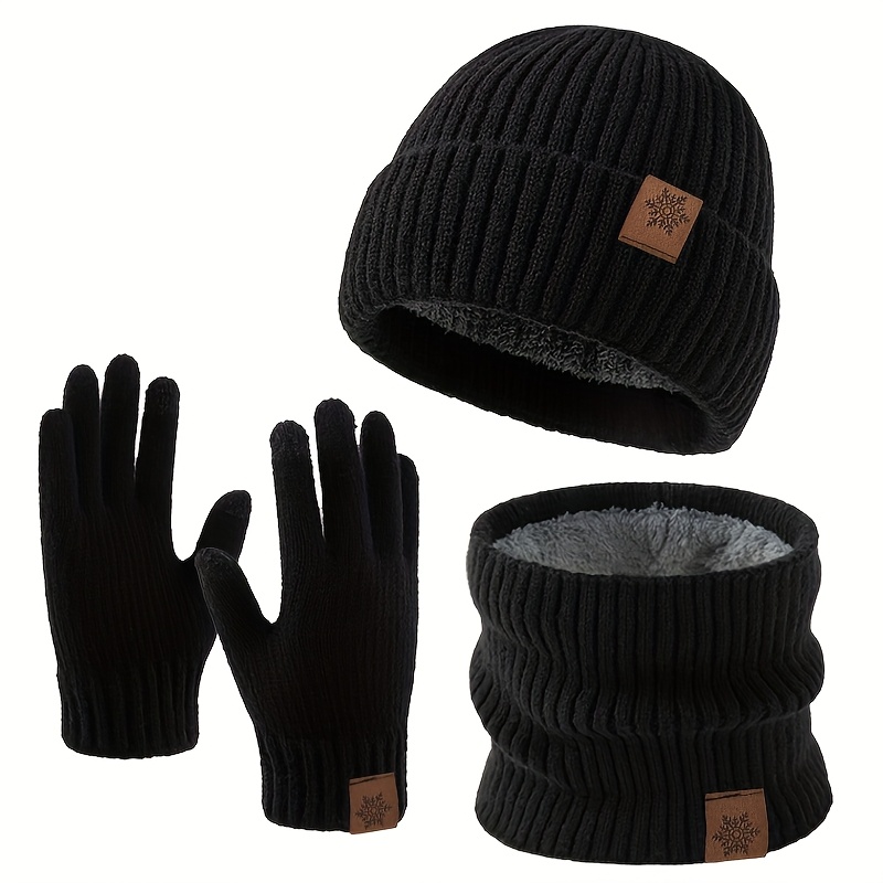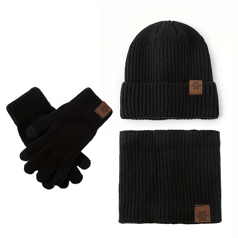 Stay warm and stylish this winter with this affordable three-piece set, featuring a matching hat, scarf, and gloves. Crafted from 100% acrylic, each piece is designed for both fashion and function. The hat and gloves showcase a classic snowflake knit pattern with faux leather detailing, blending traditional charm with a modern touch. A soft fleece inner layer ensures added insulation and comfort, ideal for outdoor leisure, skiing, or daily winter wear. This coordinated set offers an effortless way to stay warm without compromising on style.