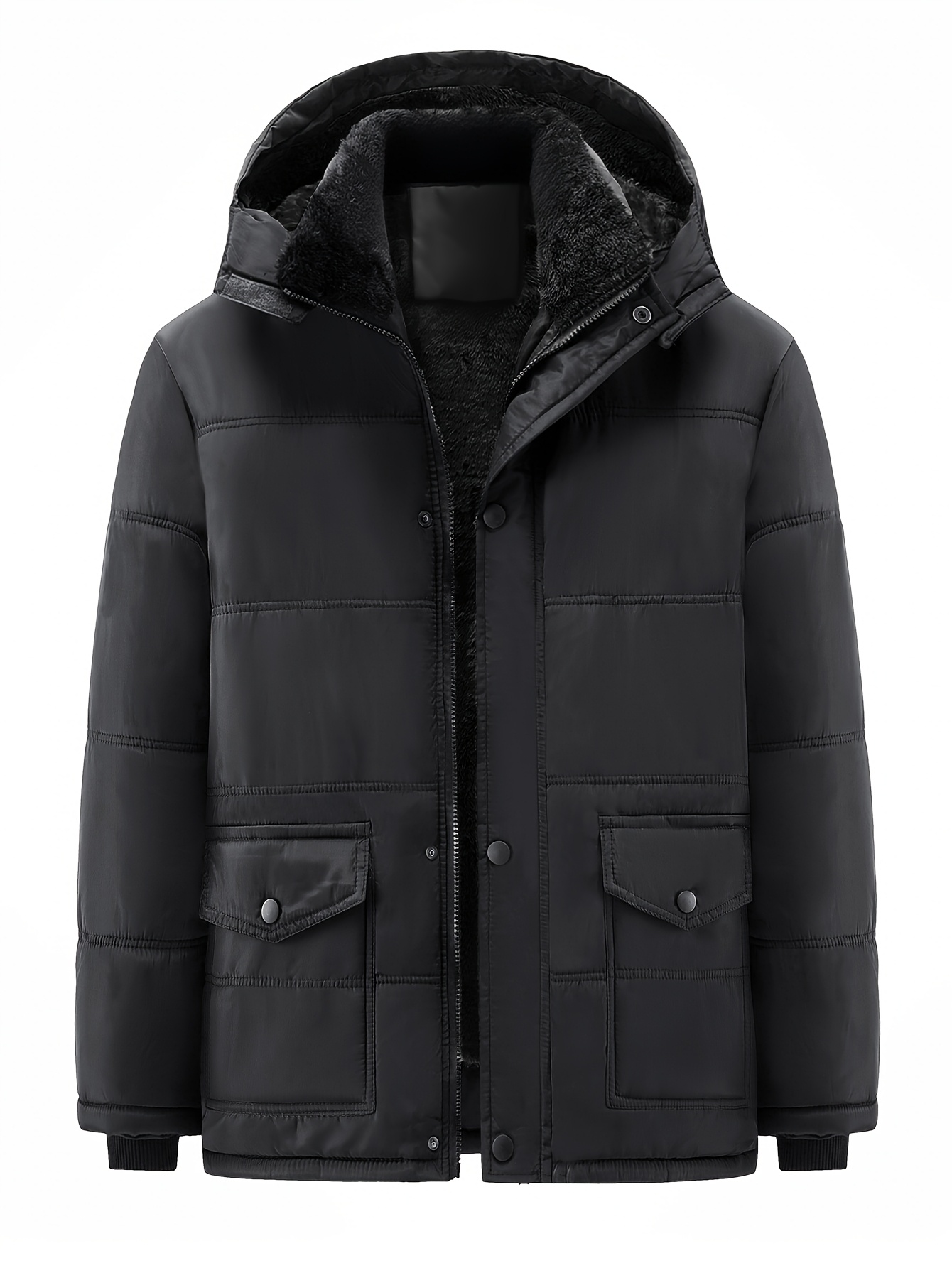 Stay protected from harsh winter conditions with this men’s padded winter coat, designed with a hooded collar and durable stitching for long-lasting wear. Crafted from 100% polyester with warm padding and a non-stretch exterior, this thick jacket is ideal for cold weather, whether for daily errands or light outdoor work. The casual workwear-inspired style pairs practicality with comfort, while the solid construction and secure pockets provide functionality for everyday use. A reliable winter outerwear option that balances insulation and rugged style for modern men.